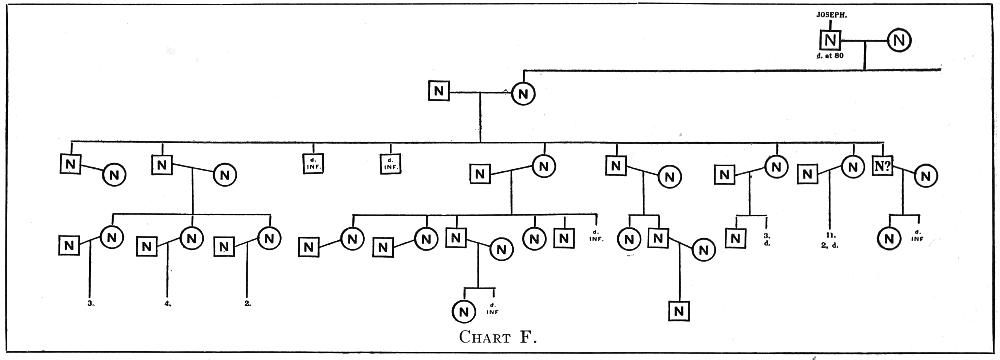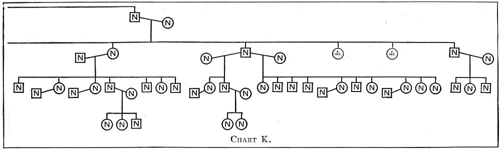 If the reader is inclined to the view that we must have called a great many people feeble-minded who were not so, let him be assured that this is not the case. On the contrary, we have preferred to err on the other side, and we have not marked people feeble-minded unless the case was such that we could substantiate it beyond a reasonable doubt. If there was good reason to call them normal, we have so marked them. If not, and we are unable to decide in our own minds, we have generally left them unmarked. In a few cases, we have marked them normal or feeble-minded, with a question mark. By this is meant that we have studied the case and after deliberation are still in doubt, but the probabilities are “N” or “F” as indicated. The mere fact of the doubt shows, however, that they are at least border-line cases.