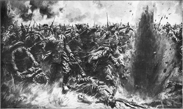 UNE DES TACTIQUES ALLEMANDES.—La ruée en formations