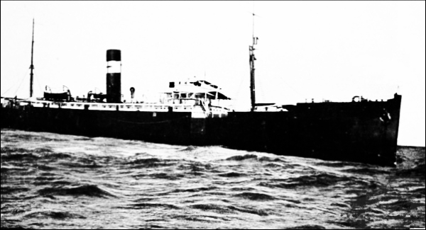 Here was another doomed ship rolling about in the Atlantic without her crew, and only a gallant handful of British seamanhood still standing by with but a shred of hope. To accentuate their suspense periscopes were several times seen, and from 9 a.m. until 9 p.m. a submarine frequently appeared on the surface at long range, and almost every hour a periscope230 passed round the ship inspecting her cautiously. During the whole of this time Chagford was settling down gradually but certainly. At dark Lieutenant Jeffrey, fearing that the enemy might attempt boarding, placed Lewis and Maxim guns in position and served out rifles and bayonets to all. Midnight came, and after making a further examination of the damage, Lieutenant Jeffrey realized that it was impossible for the Chagford to last much longer, for her main deck amidships was split from side to side, the bridge deck was badly buckled, and the whole ship was straining badly. Therefore, just before half-past midnight, these five abandoned the ship in a small motor-boat which they had picked up at sea some days previously, but before quitting Chagford they disabled the guns, all telescopic sights and strikers being removed.