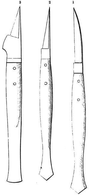 Any portions of the dressings, &c., having curves in them, had better be cut with knife 67No. 3[4]; in fact, this is the only shape of blade which will leave the edge of a curved line after cutting, what is technically called “sweet.”