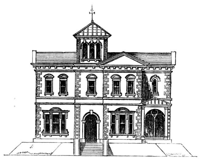 59The two principal elevations are given to the same scale as the plan (page 41); but in order to insure our being understood, the principal portions of the details are given to a larger scale.