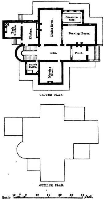 We have mention made of models as early as 1546, when San Gallo (a pupil of Bramante, the original architect of St. Peter’s, at Rome), either himself constructed, or caused to be, a model of his proposed designs for that magnificent structure, in order that the whole might be carried out in the same spirit in the event of 16his death. On this latter event occurring, the immortal Michael Angelo Buonarotti undertook the important office of architect to St. Peter’s. One of his first tasks was to set aside the model of his predecessor, which had occupied many years in constructing, at a cost of many thousand pounds, while he constructed himself, at a trifling expense and in a few days, another model of his intended work. Numerous other instances of the practical utility of this branch of art might be cited, but the author deems it unnecessary, its importance being at once obvious; and this little work, though devoid of all technicalities, too frequently the fault of works of this description, yet is intended shall be eminently practical. To a large and increasing body, the architectural assistants, it is hoped that this little hand-book will prove to be acceptable; and though written principally for the professional man, it is hoped it may not prove utterly useless or uninteresting 17to others, who though not members of the architectural profession may yet possess sufficient taste and skill to wish to perpetuate