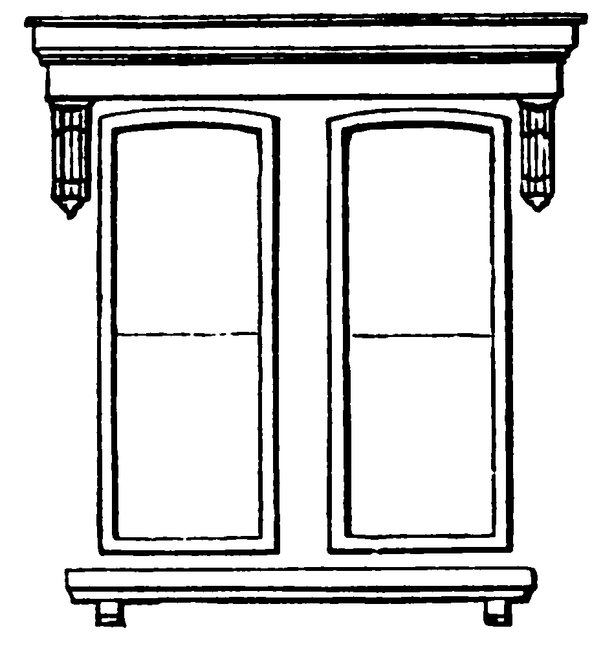 64The circular pediment over windows (fig. 2, page 61) must be modelled on the flat, and the moulding returned at the ends. When each member is finished, they must be gummed up and bent to the required curve, over a circle of cardboard or a cylinder of wood, separately. The panels that occur form thus: Cut as before directed for doors, the extreme size of the opening, and at the back place the successive sizes and thicknesses to form the mouldings, indented into hollows or worked to rounds, &c., &c., by means of one or more of the moulding tools; to be backed last of all.