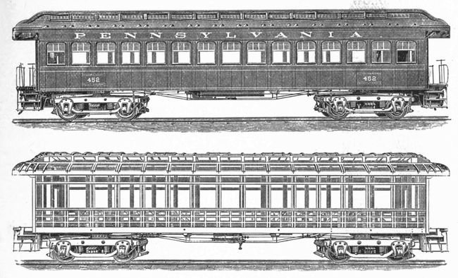 | The Earliest Railway Passenger Advertisement—The First Time-table Published in America—The Mohawk & Hudson Train—Survival of Stage-coach Terms in English Railway Nomenclature—Simon Cameron's Rash Prediction—Discomforts of Early Cars—Introduction of Air-brakes, Patent Buffers and Couplers, the Bell-cord, and Interlocking Switches—The First Sleeping-cars—Mr. Pullman's Experiments—The "Pioneer"—Introduction of Parlor and Drawing-room Cars—The Demand for Dining-cars—Ingenious Devices for Heating Cars—Origin of Vestibule-cars—An Important Safety Appliance—The Luxuries of a Limited Express—Fast Time in America and England—Sleeping-cars for Immigrants—The Village of Pullman—The Largest Car-works in the World—Baggage-checks and Coupon Tickets—Conveniences in a Modern Depot—Statistics in Regard to Accidents—Proportion of Passengers in Various Classes—Comparison of Rates in the Leading Countries of the World. | |