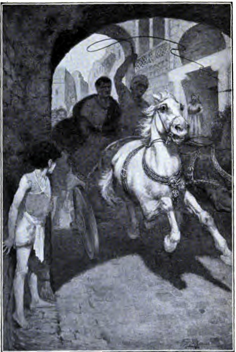 The stranger had forcibly relaxed the clutch of the bony fingers. “Here is thy money,” he said, counting out from his broad palm the coins which the child passed over to him with a look of piteous appeal. “Five denarii, saidst thou. As for the lad, if he hath the proper love for thee he will doubtless return fast [pg 22]enough when thou art in kindlier temper; if not, thou art relieved of his keep. Come with me, boy, if thou wouldst eat.”