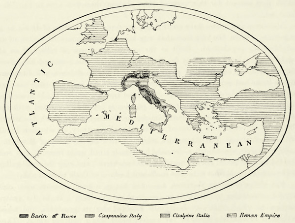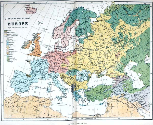 The first of these great families of European nations, the members of which speak Greco-Latin languages, occupies the southern slopes of the Balkan and of the Alps, the Iberian peninsula, France, and a portion of Belgium, as well as a few detached territories within the limits of the ancient Roman empire, altogether surrounded by alien nations. Such are the plains of the Lower Danube and a portion of Transylvania, which are inhabited by the Rumanians, and a few secluded Alpine valleys inhabited by “Romans.” On the other hand, fragments of two ancient nations have maintained their ground in the midst of Latinised populations, viz. the Celtic inhabitants of Brittany, and the Basks of the Pyrenees. Generally speaking, however, all the inhabitants of South-western Europe, whether of Celtic, Iberian, or Ligurian race, speak languages derived from the Latin, and whatever differences existed originally between these various populations, this community of language has more or less obliterated them.
