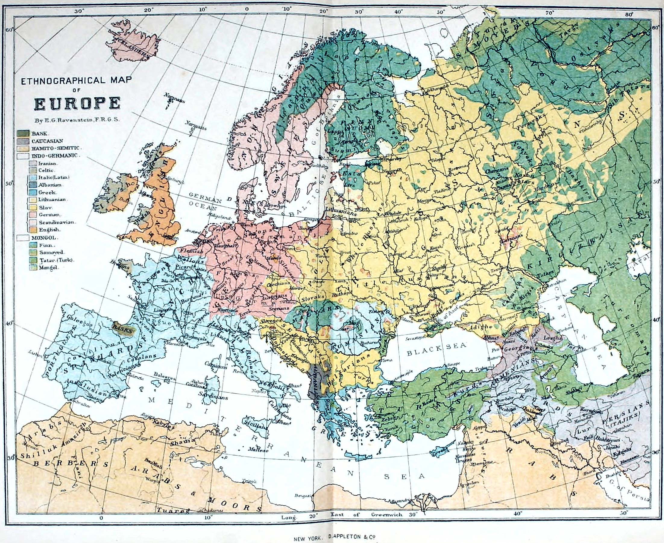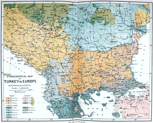 Leaving out of consideration the smaller families of nations, as well as the members of races who have not attained a national existence, Europe may be described as consisting of three great ethnological divisions, the principal boundary between which is formed by the Alps, the Carpathians, and the Balkan.