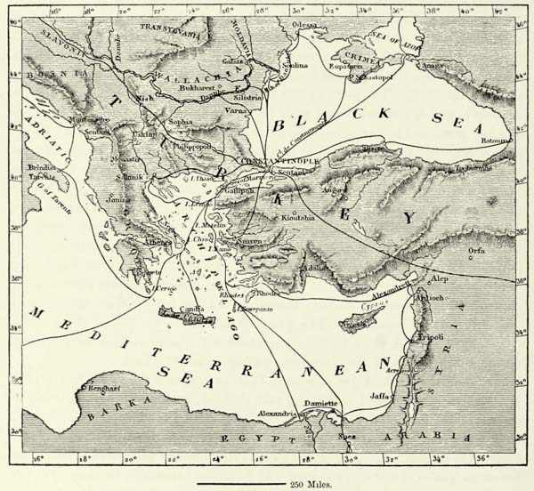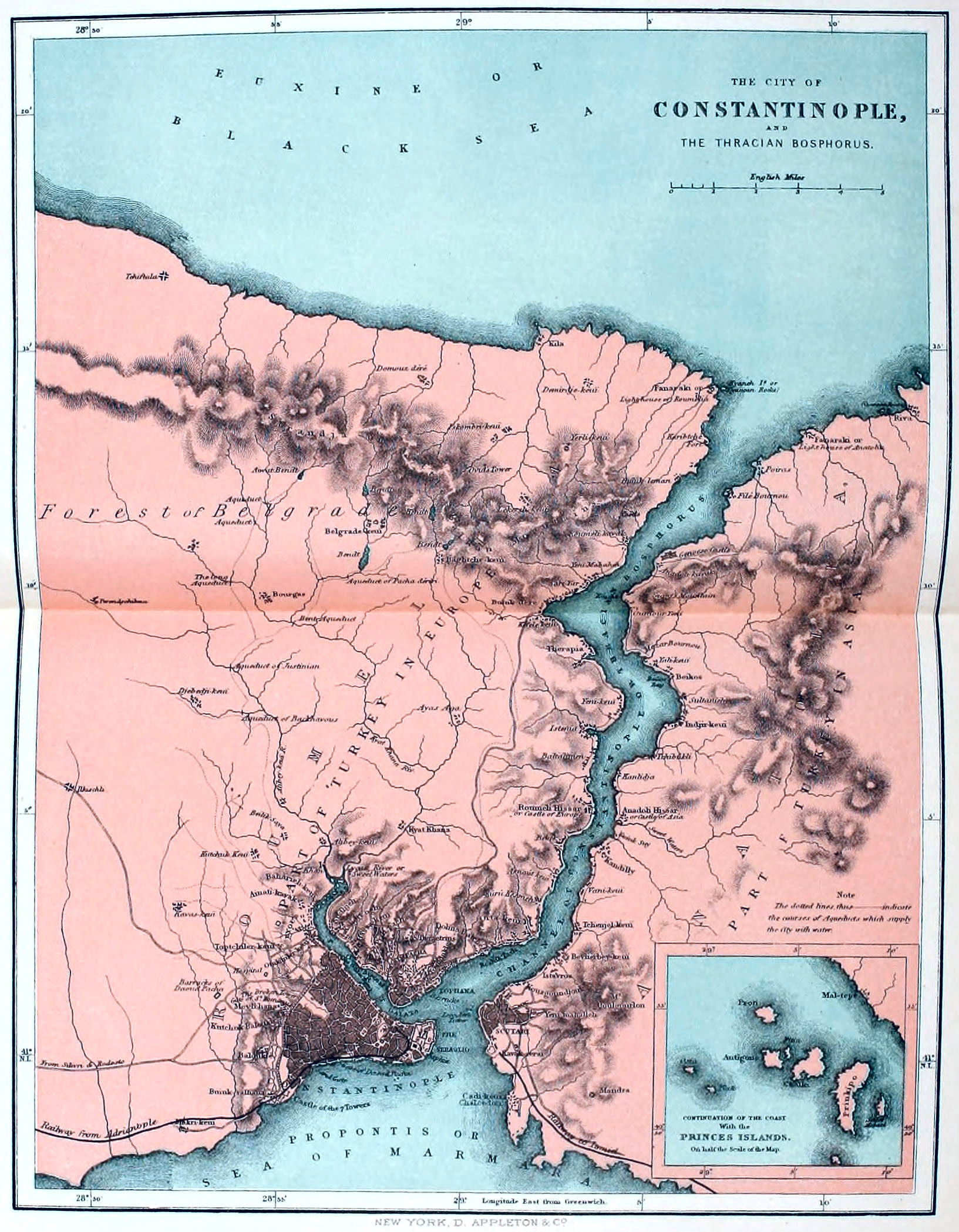 Page 104n. The note beginning “Length of the Bosphorus” had no anchor in the text. A new one has been placed on page 103, after “shores of Europe and Asia.”