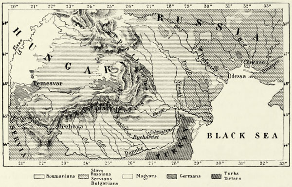 The Slavs, or Slavonians, form the third group of European nations. They are less numerous than the Greco-Latins, but the territories they occupy are far more extensive, for they spread over nearly the whole of Russia, over Poland, a large portion of the Balkan peninsula, and about one-half of the Austro-Hungarian monarchy. All the great plains to the east of the Carpathians are inhabited by Slavs, either pure or mixed with Tartars and Mongols. To the west and south of the mountains the race is split up into numerous small nations, and in the valley of the Danube these come into contact with Rumanians, as well as with Turks and Magyars, the two latter being of Asiatic origin, and these separate the Slavonians of the north from the Slavonians of the south. In the north, Finns, Livonians, and Lithuanians interpose between the Slavonians and the Germanic nations.4