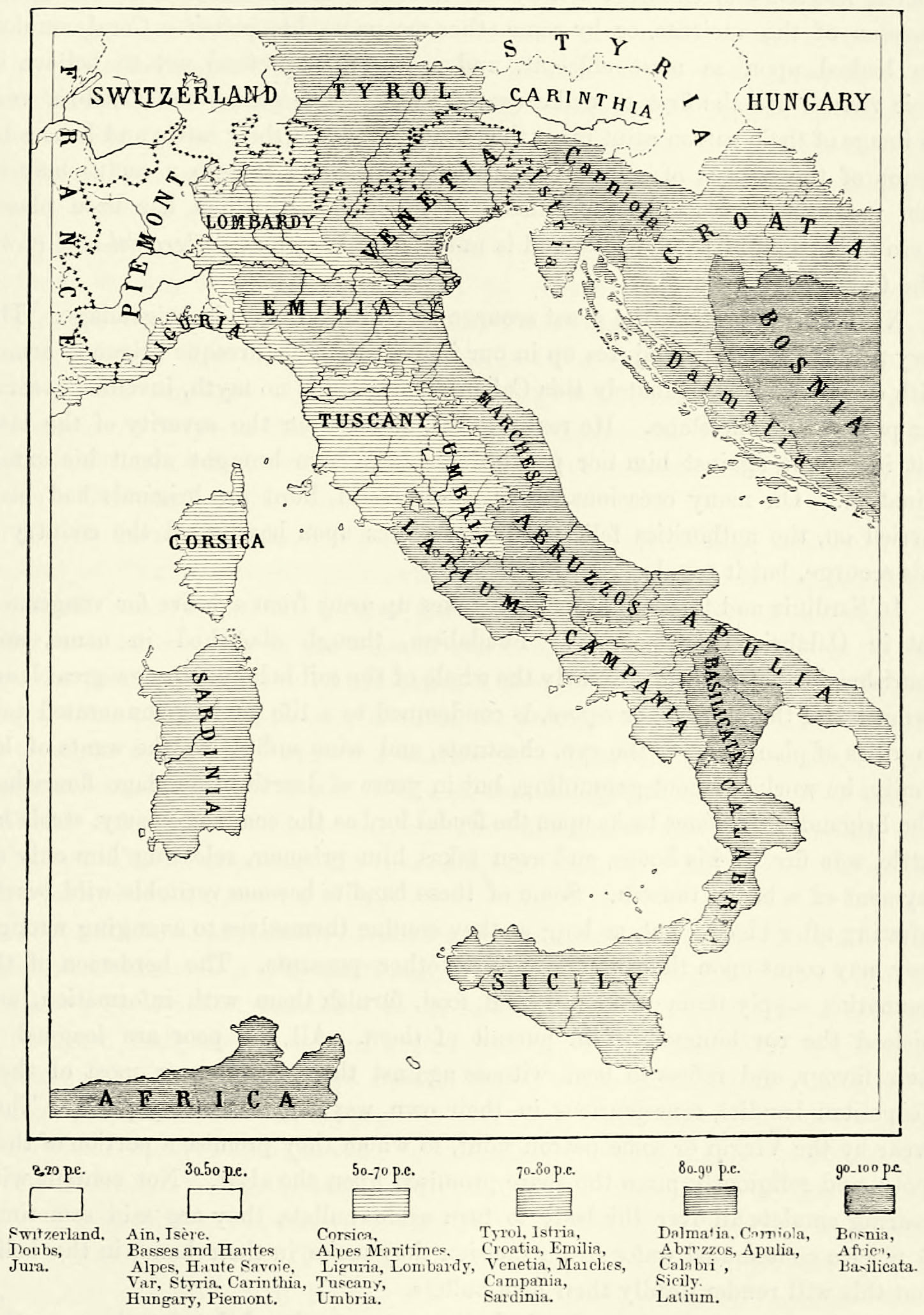 The so-called “balance of European powers,” founded as it is upon the rights of war and ambitious rivalries between nations, is necessarily unstable. Nations eminently fit to lead a common political existence are torn asunder on the one side, whilst the most heterogeneous elements are thrown together on the other. In these political arrangements the nations themselves are never consulted, but their wishes and inclinations must nevertheless prevail in the end, and the artificial edifice raised by warriors and statesmen will come to the ground. A true “balance of power” will only be established when every nation of the continent shall have become the arbiter of its own destinies, when every pretended right of conquest shall have been surrendered, and neighbouring nations shall be at liberty to combine for the management of the affairs they have in common. Our arbitrary political divisions, therefore, possess but a transitory value. They cannot altogether be ignored; but in the following descriptions we shall, as far as possible, adhere to the great natural divisions as defined by mountains and valleys, and by the distribution of nations having the same origin and speaking the same language. But even these natural boundaries lose their importance in countries like Switzerland, inhabited by nations speaking different languages, but held together by the strongest of all ties—the common enjoyment of freedom.