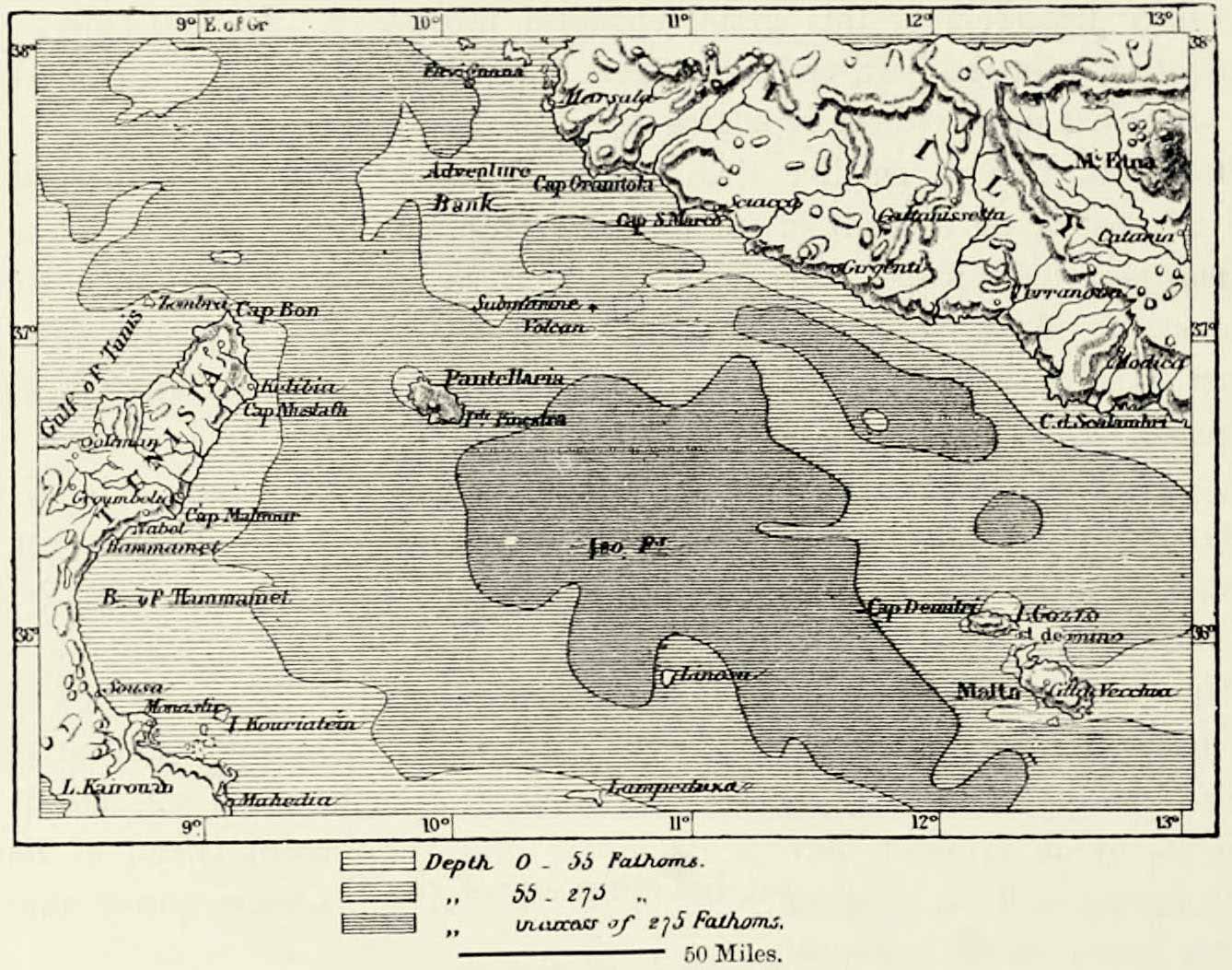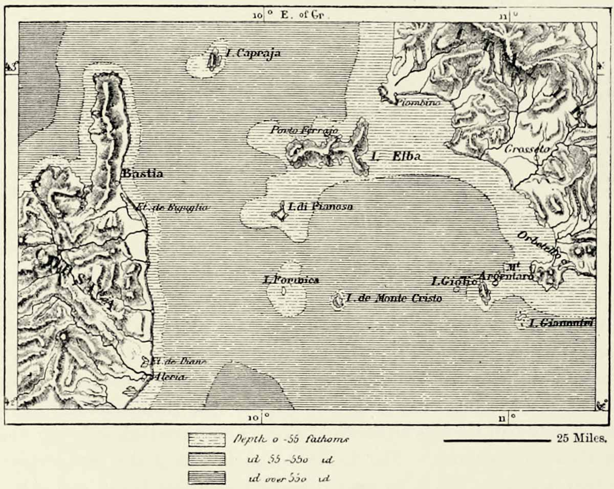 The islands of Europe must be looked upon as dependencies of that continent, for most of them are separated from it only by shallow seas. Candia and the islands scattered broadcast over the Ægean Sea, the Archipelagos of the Ionian Sea, and of Dalmatia, Sicily, Corsica and Sardinia, Elba, and the Baleares, are in reality but prolongations, or maritime out-stations, of neighbouring peninsulas. To the islands of Sealand and Fyen, at the entrance to the Baltic, Denmark owes {15} most of her commercial and political importance. Great Britain and Ireland, which actually formed a portion of the European continent in a past age, cannot be looked upon otherwise than as dependencies of it, although the isthmus which once joined them has been destroyed by the waters of the ocean. England has actually become the grand commercial emporium of Europe, and plays now the same part in the world’s commerce that Greece once played in that of the more restricted world of the Mediterranean.