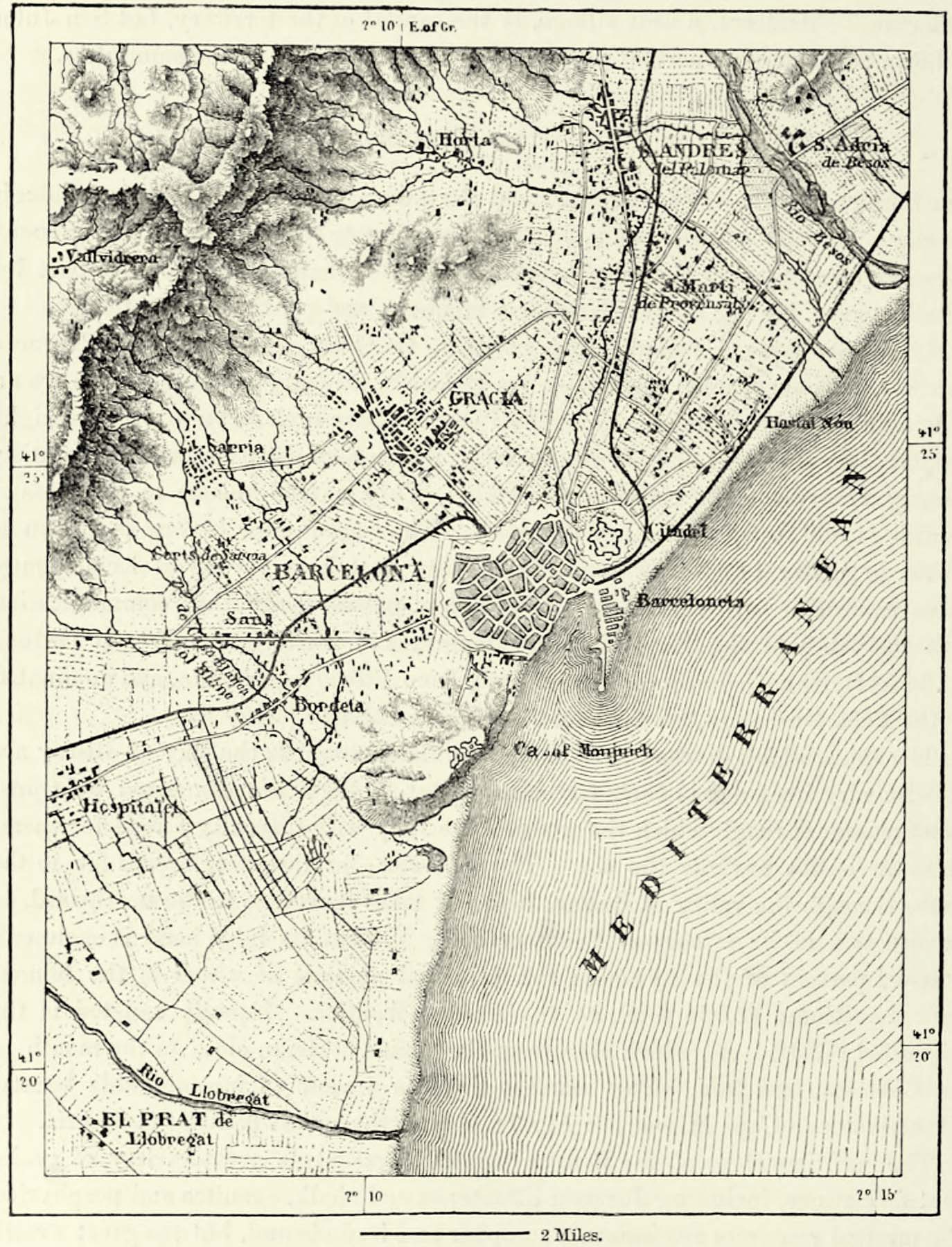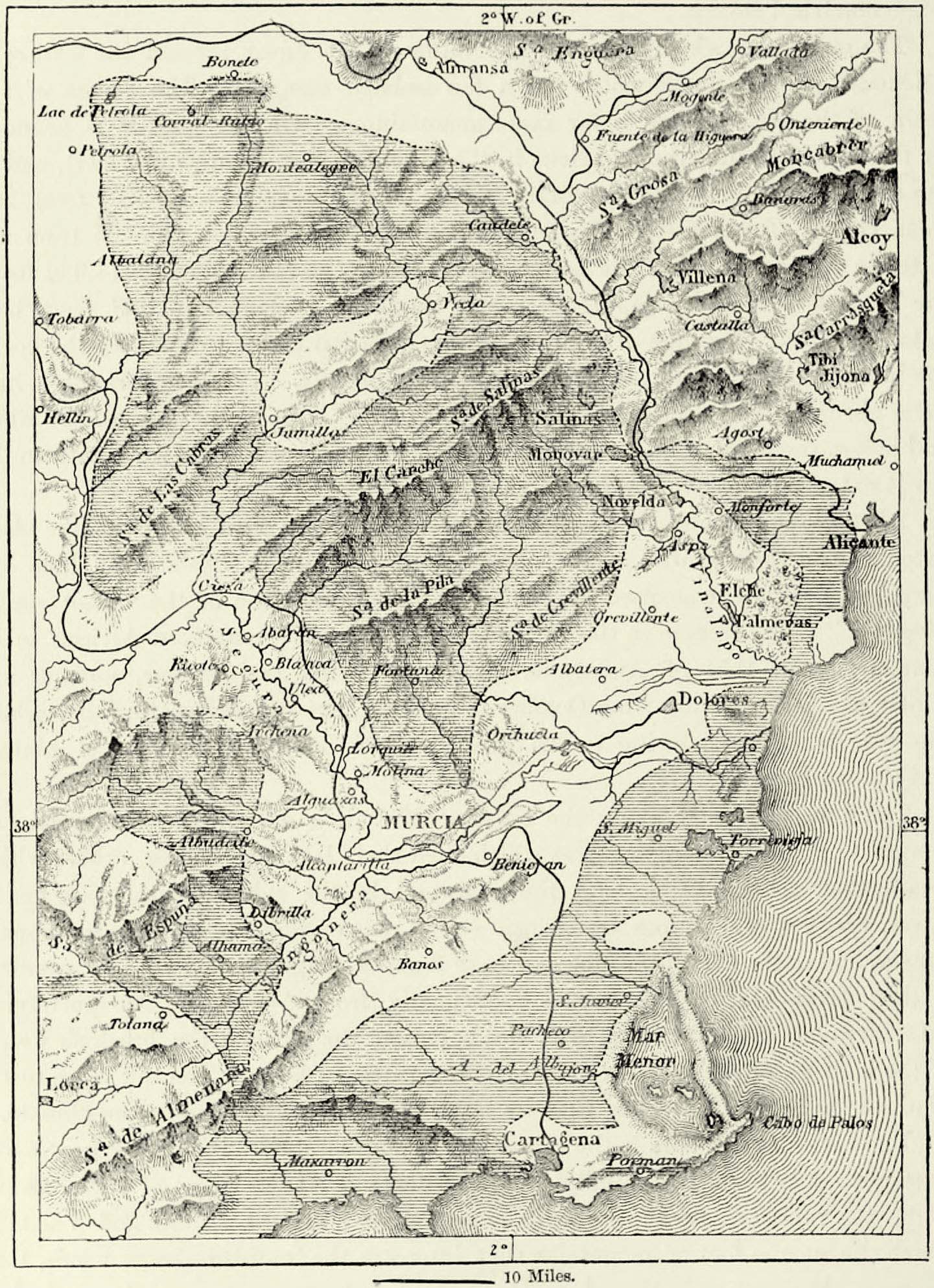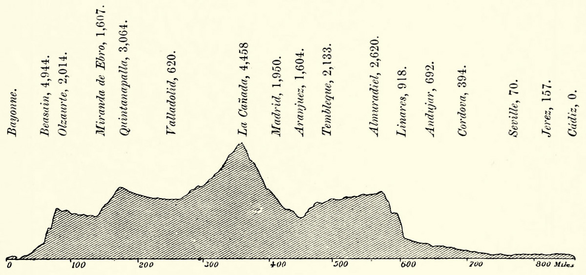 The Europe alluded to includes France, Germany, England, and the three Mediterranean peninsulas, and constitutes several natural divisions. The British Islands form one of these. The Iberian peninsula is separated scarcely less {10} distinctly from the remainder of Europe, for between it and France rises a most formidable range of mountains, the most difficult to cross in all Europe; and immediately to the north of it a depression, nowhere exceeding a height of 650 feet, extends from the Mediterranean to the Atlantic Ocean. The geographical unity of Europe is represented to the full extent only in the system of the Alps, and in the mountains of France, Germany, Italy, and the Balkan peninsula which are connected with it. It is there we must seek the framework of continental Europe.