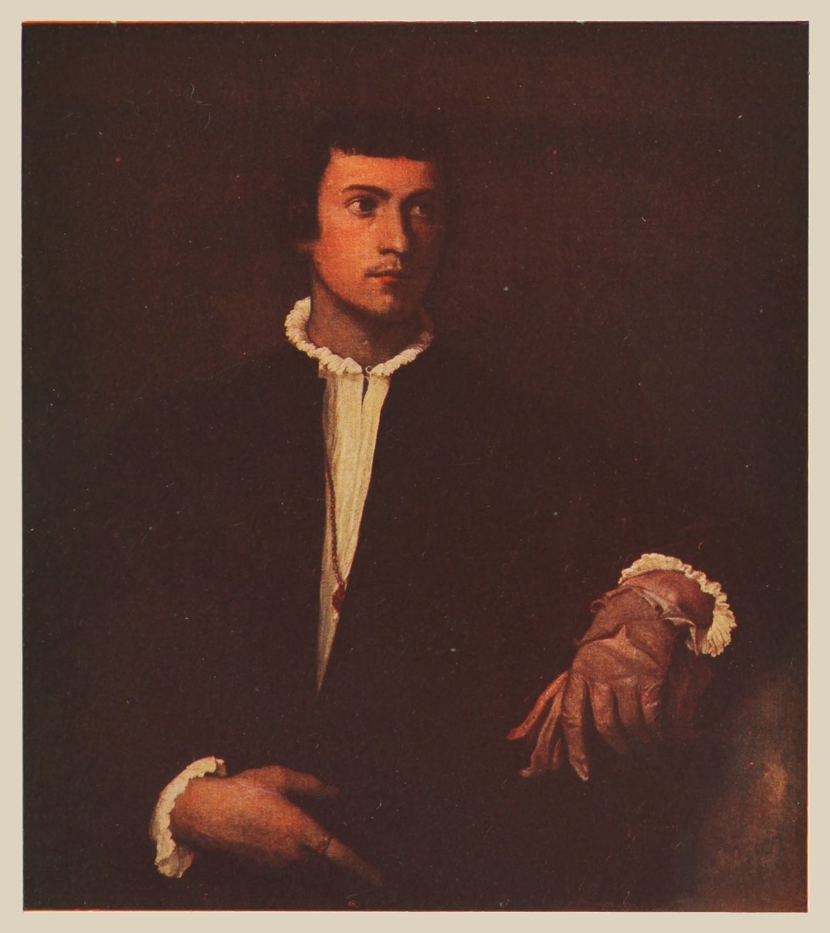 L’HOMME est campé dans une attitude aisée, fière, qui révèle un soldat sous l’ajustement du courtisan. La tête énergique, aux traits accentués, encadrée de cheveux rudes, fait penser à ces gentilshommes batailleurs dont la France tout entière fut le champ clos à l’époque des guerres de religion. La douceur n’était pas leur vertu; ils n’avaient de respect que pour la force. Féroces dans le combat, impitoyables dans la victoire, ils commettaient au nom de Dieu les pires atrocités et donnaient carrière, sous le couvert de convictions religieuses, à leurs instincts de violence et de rapine, allant parfois jusqu’à se mettre en révolte ouverte contre l’autorité royale. L’inconnu de ce petit tableau dut être un de ceux-là: il y a de l’audace dans le regard, de la dureté dans les lignes du visage, de la sévérité dans les lèvres étroitement closes. Une large fraise tuyautée encadre la mâle figure du personnage. Le haut du corps est pris dans un pourpoint d’un blanc crémeux fermé sur la poitrine par un rang de boutons et qui se termine en pointe à la ceinture, selon la mode du temps. La main gauche serre la poignée de l’épée, tandis que la droite s’appuie sur la hanche. Le haut-de-chausses, raide comme un corselet d’acier, se compose de riches passementeries rouges appliquées sur un fond crème, semblable à celui du pourpoint. On ne voit qu’une partie des jambes, jambes nerveuses et souples d’un homme que n’ont pas énervé les plaisirs et l’oisiveté de la Cour.