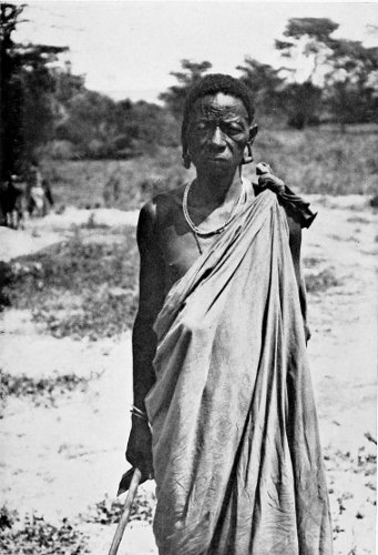 MY OLD FRIEND “NGURUMAN,” A WANDOROBO CHIEF. HIS BODY IS SEARED BY MANY SCARS THAT TELL OF ENCOUNTERS WITH ELEPHANTS AND LIONS.