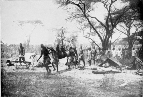 A PARTY OF WANDOROBO HUNTERS COMING TO MY CAMP. I GOT SEVERAL OF THEM TO ACT FOR ME AS GUIDES.