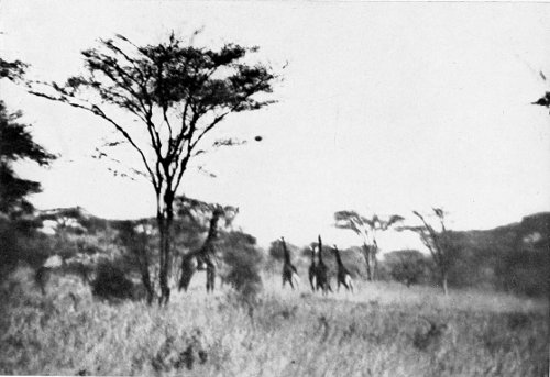 For an effective picture you need to have a group of animals either standing still or in motion, and this you can very seldom get at close quarters, though now and 676 again you may happen upon them standing under trees; and when this occurs you may hope for good results, because the way in which the blue rays of light are reflected from the trees has a favourable effect upon the bromide-silver plates.