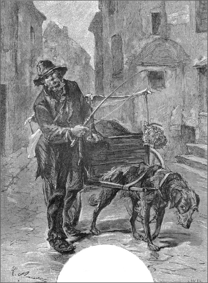 Aucun spectateur sérieux ne se rendant aux invitations réitérées du forain, la charrette reprit sa marche, tirée péniblement par le grand chien efflanqué.