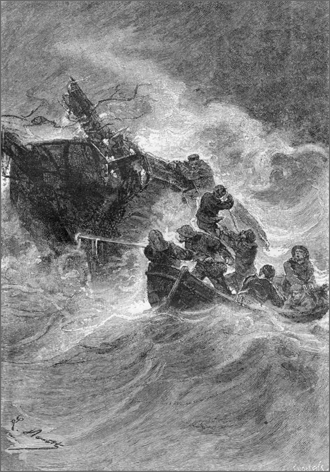 Du reste, on ne voyait à Westport aucun navire appartenant aux autres pays. Des bricks-goélettes, des schooners ou des cutters, quelques barques de pêche, de celles qui travaillent à l'ouvert de la baie, se trouvaient à sec, la marée étant basse. Ces navires, venus de la côte occidentale de l'Écosse avec des chargements de céréales,—ce qui manque le plus au Connaught,—repartiraient sur lest, après avoir livré leur cargaison. Pour rencontrer les bâtiments de grande navigation, il faut aller à Dublin, à Londonderry, à Belfast, 8 à Cork, où font escale les paquebots transatlantiques des lignes de Liverpool et de Londres.