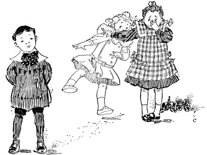 “Is it possible that you—” she inquired, pointing to the advancing children, many of whom promptly fell over backward under the sudden onslaught of the horrified teachers.