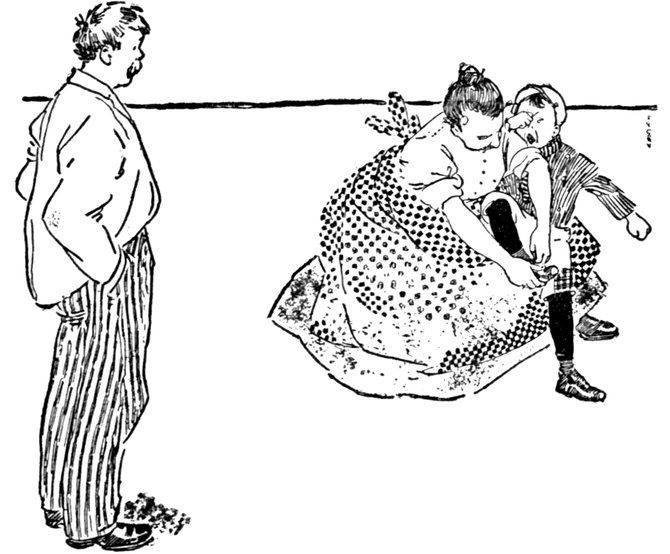 “Ye may say so!” interrupted Philip’s parent. “An’ whin it’s that way he is, it’s little good soft words’ll do, Miss. He gets it from his father. An’ me not able to cut the mate fer his father’s 23dinner! He’s a sly young one! It’s a good spankin’ he needs, Miss—an’ he’ll get it, too!”
