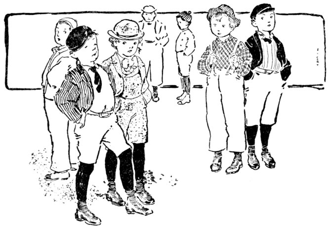 At just that moment little Richard Willetts sneezed loudly and unexpectedly to all, himself included, with the result that his ever-ready suspicion fixed upon his neighbor, Andrew Halloran, as the direct cause of the convulsion. Andrew’s well-meant efforts to detach from Richard’s vest the pocket-handkerchief securely fastened thereto by a large, black safety-pin strengthened the latter’s conviction of intended assault and battery, and he squirmed out of the circle and made a dash for the hall—the first stage in an evident homeward expedition.