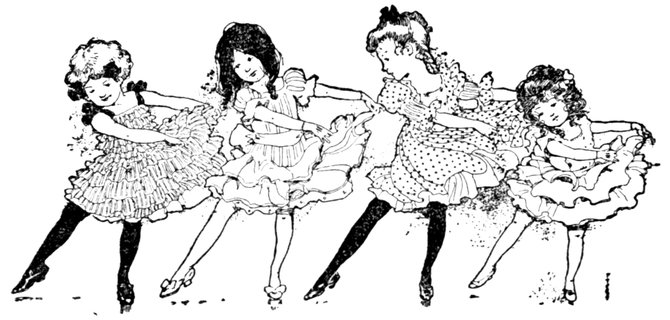 As she had expected, Eddy inclined to play “Tripping lightly as we go.” His conception of the process implied in the song was a laborious jumping up on one toe and down on the other. This exercise he would keep up till the crack of doom if undiverted from it. When induced to stop, he signalled to Joseph Zukoffsky to take his place. Joseph, on being tunefully implored to produce something new in the way of a game, declared for “Did you ever see a laddie?” and the ring started in blithely:
