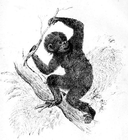 Mafuca, whose portrait is given in the following pages, was a female ape from the Loango coast, placed in the Dresden Zoological Gardens. Hartmann, in his “Anthropoid Apes,” describes her as being “120 cm. in height, reminding us in many respects of the gorilla. The face was prognathous; the ears were comparatively small, placed high on the skull, and projecting outwards; the supra-orbital arch was strongly developed; the end of the nose was broad; and there were rolls of fat on the cheeks.” K. Th. von Siebold also classed her as a gorilla; but Bolau and A. B. Meyer opposed this view; while Bischoff, judging by the structure of the brain, thought she was a chimpanzee. Now it is pretty generally believed that she was either a cross between the gorilla and the chimpanzee, or else a member of a distinct species of anthropoids intermediate between the gorilla and the chimpanzee. In Hartmann’s account of Mafuca we read that she was[Pg 19] “a remarkable creature, not only in her external habits, but in her disposition.... She hardly obeyed anyone except Schöpf, the director of the gardens, and when in a good humour she would sit on his knee and put her muscular arms round his neck with a caressing gesture.... Mafuca was able to use a spoon, although somewhat awkwardly; and she could pour from larger vessels into smaller ones without spilling the liquor. She took tea and cocoa in the morning and evening, and a mixed diet between whiles, such as fruit, sweetmeats, red wine and water, and sugar.... If she was left alone for any time she tried to open the lock of her cage without having the key, and she once succeeded in doing so. On that occasion she stole the key, which was hanging on the wall, hid it in her axilla [arm-pit], and crept quietly back to her cage. With the key she easily opened the lock; and she also knew how to use a gimlet. She would draw off the keeper’s boots, scramble up to some place out of reach with them, and throw them at his head when asked for them. She could wring out wet cloths, and blow her nose with a handkerchief. When her illness began, she became apathetic, and looked about with a vacant, unobservant stare. Just before her death, from consumption, she put her arms round Schöpf’s neck when he came to visit her, looked at him placidly, kissed him three times, stretched out her hand to him, and died.” It may be added to this that Mafuca exhibited the greatest decorum and modesty in the performance of all her daily and other natural functions.