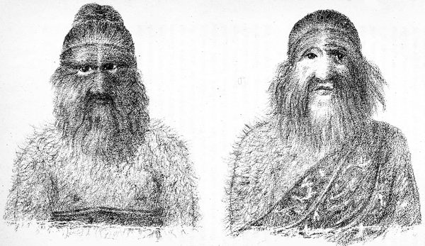 These primitive ape-like men were the connecting links between men and the apes, and are divided into two main branches—viz., woolly-haired Alali, who migrated from Lemuria, west and south; and straight-haired Alali, who migrated from Lemuria, north, east, and south. Both these branches had skulls of the same character as those of the[Pg 45] chimpanzee and gorilla—that is, they were dolichocephalic (long-headed) prognathous (prominent jaws), and also, like their ape brethren, were troglodytes, or cave-dwellers. From the woolly-haired Alali evolved the Papuans of New Guinea and Tasmania, and the Hottentots of Africa, whose descendants of to-day are but little removed in brain development from the higher apes. They are dolichocephalic prognathous savages, with black, hairy skins, long arms, and short, thin legs, with ill-developed calves; are semi-erect, walk on hind legs, and have no true articulate speech. A higher development of the woolly-haired Alali is the Negro, and higher still the Caffre, both of whom are dolichocephalic prognathous savages, with black, semi-hairy skins, and imperfect articulation. From the straight-haired Alali are derived the Australian natives and the large family of Malays or Polynesians. The Australians migrated south, and were dolichocephalic prognathous savages, with smooth, dirty brown skins, and straight black hair. The lowest tribes of the present day have no true articulate speech. The Polynesians migrated north and east, and were dolichocephalic prognathous troglodytes (as the gorilla and chimpanzee), with clear, smooth brown skins, and true articulate speech. This branch split up into two large families, the Mongolian or Turanian, and the Caucasian or Iranian. The former covered Northern and Eastern Asia, Polynesia, and America, and were originally brachycephalic (broad-headed) prognathous men. They subdivided into two distinct species, the Mongols of China, Japan, Lapland, Finland, and Hungary, who are brachycephalic, but not prognathous, with smooth, brownish yellow skin, and straight black hair; and the Mongols of America, who are mesocephalic (round-headed), but not prognathous, with smooth red skins and straight black hair. The Caucasian family covered Western Asia and most of Europe, being mesocephalic prognathous troglodytes (afterwards agriculturalists) with smooth dark skins and long straight hair; and subdivided into two branches, the Semitic, of Arabia and Syria, and the Aryan or Indo-European; both of whom are mesocephalic, but not prognathous.
