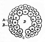 The next forms of life to be developed, from the Monorrhini, were the Selachii (Amphirrhini), or true fishes, of the shark family, with two nasal cavities, swim-bladder, two pairs of fins, and jaws. From these evolved the Ganoidei, and thence all osseous fishes; and Dipnoi (mud fish), or hybrid fishes and amphibians, with both gills and lungs. These little animals live during winter in water, when they breathe air dissolved in water through their gills; and during the summer in mud, when they breathe with their lungs. Both these are placed in the Devonian period, in which have been found fossil sharks, etc. The next forms are Sozobranchii, or amphibians with persistent gills, from which evolved Urodela, or amphibians with transitory gills, but persistent tails, and legs; allied to the salamander. These are placed in the Carboniferous period, in which have been found fossilised amphibians. We next get Protamnia, or hybrid salamanders and lizards (frogs and toads), with no gills or tails, but possessing an amnion and cloaca. These represent the parent forms of the three great higher branches of vertebrates—Reptilia, Aves (which evolved from reptiles), and Mammalia, and are placed in the Permian period, in which have been found fossilised amphibians and true reptiles. Monotremata (Promammalia) are the next forms developed in our pedigree, the parent forms of the class Mammalia; with cloaca, amnion, and marsupial bones; which are placed in the Triassic period; and from which evolved Marsupialia, mammals with amnion and marsupial bones, but no cloaca; allied to the kangaroo and opossum of to-day. This species we place in the Jurassic and Cretaceous periods. From Marsupialia developed the large kingdom of Placentalia, which lose the marsupial bones and cloaca, and acquire a placenta, and which we divide into three main branches, according to the particular placental formation. The first division we call Villiplacentalia (tufty placenta), from which evolved Edentata (sloth, ant-eaters, and tertiary monsters), Cetacea (marine placental mammals, such as whale, dolphin, porpoise, and sea-cow), and Ungulata (horse, cow, pig, rhinoceros, and hippopotamus). The second division we term Zenoplacentalia (ring-like[Pg 44] placenta), the earliest forms of which were Carnaria, or flesh-eaters, from which came Carnivora, or land beasts of prey (cats, dogs, bears, etc.), and Pinnipedia, or marine beasts of prey (seal and walrus). The third division we name Discoplacentalia (discoid placenta); and here we find, as the first development, the Prosimiæ, or tailed lemurs, quadrupeds with claws, and having the appearance of hybrid cats and monkeys. All these are placed in the Eocene period, in which stratum geologists have found fossilised placentals.