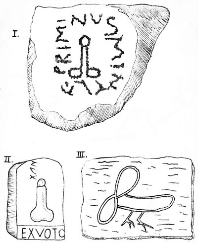 The illustration of the amulet in Mr. Townley’s museum represents the female principle at the top, in the form of a circle, under which is the victorious sun-god of the vernal equinox, in the shape of a bull’s head with a cross or phallic symbol (erect male organ in the original) on either side of the mouth, the whole being emblematic of the sexual union of the powers of heaven and earth, and the consequent regeneration of nature at the spring equinox.