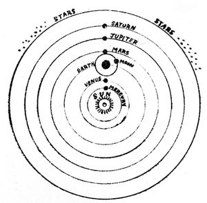 During many long ages this process of condensation of the nebulous vapour steadily continued, being controlled by the laws of gravitation and transformation, until, at length, a number of rotating spherical nebular masses were formed, in a state of high heat from the shock of their recently-united atoms, which spheres gradually cooled by radiation, consequently contracting and becoming possessed of a more rapid rotary motion, giving off from their equatorial regions large rings of vapour, which, in their turn, condensed and, under the influence of the same two laws, formed separate spheres for themselves. This is the mode by which our planetary system was formed, as taught by Laplace and accepted by the scientists of to-day.