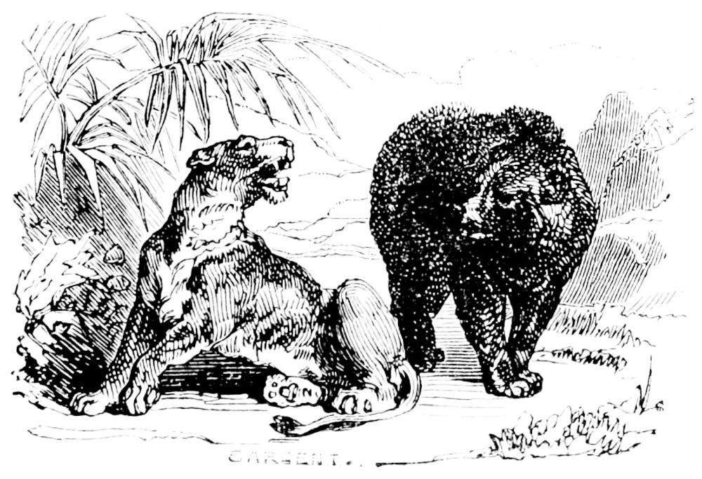 [414] Los perros y los gatos... Tan poco usual es esto que se emplea la frase: Andar como perros y gatos para indicar el aborrecimiento que se tienen ciertas personas.