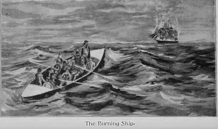 There was a dead silence in that little boat (save for the sound of the oars) for many minutes after the final scene. All seemed awed, and when at length the ship’s side was reached, Captain Murray raised his head for the first time since he had looked on his lost vessel. His eyes were moist with the only tears that they had known since childhood. As he climbed over the bulwarks, Captain Meade came forward—the American warmly grasped the Englishman’s hand. With rare tact, he spoke no word, but led his guest down the companion-way and into the privacy of his own room, leaving Mr. Marsh to attend to the proper disposition of the remainder of the rescued.