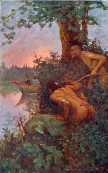 “Warriors of the Powhatans!” he cried, addressing the concealed savages, to whom he knew that the light of the fire at his back made him plainly visible. “Warriors of the Powhatans! The English sleep like the village dog, with one eye cocked, but you think to find us snoring like old women when you steal upon us in the night. We also have learned something of the ambuscade since coming among you. What ho, my men!”