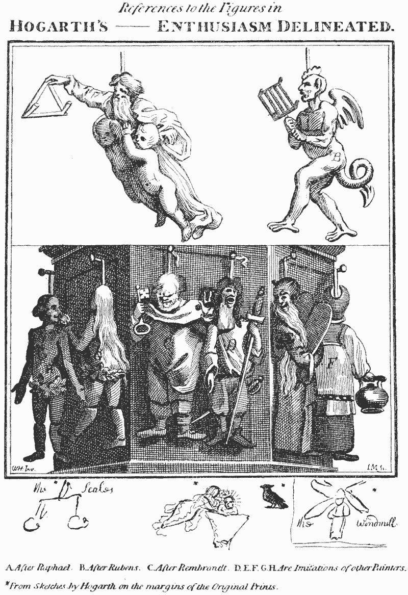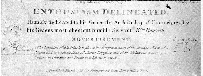 “Enthusiasm Delineated. (Humbly dedicated to his Grace the Arch Bishop of Canterbury by his Graces most obedient humble Servant Wm. Hogarth”) ▶ … Between pages 88 and 89