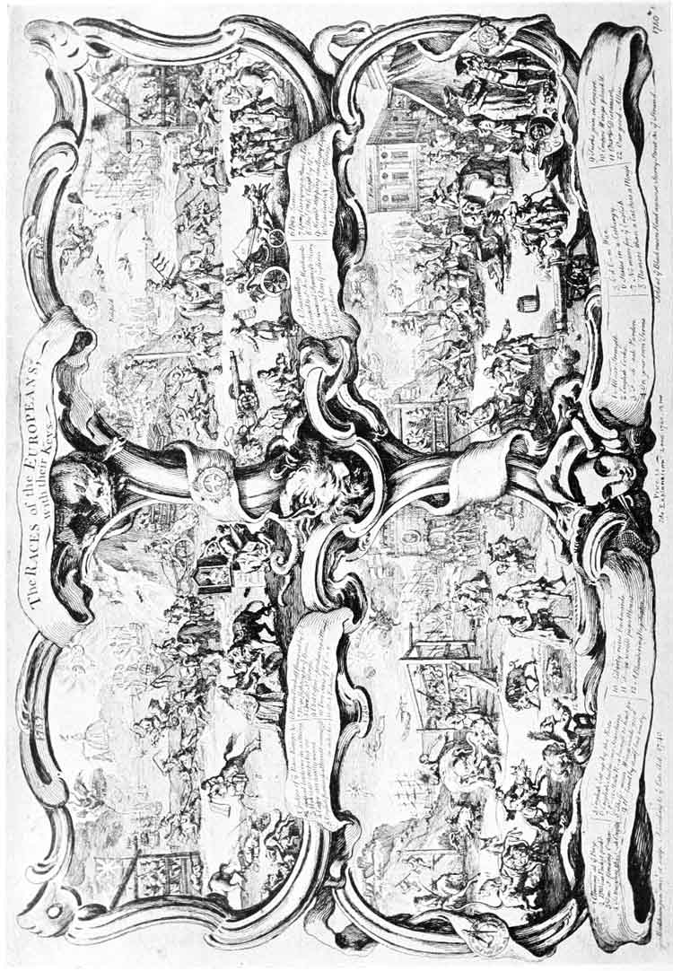 “L’Europe alarmée pour le Fils d’un Meunier.” (The plate in its first state) ▶ … Between pages 204 and 205