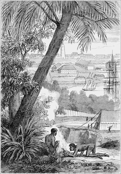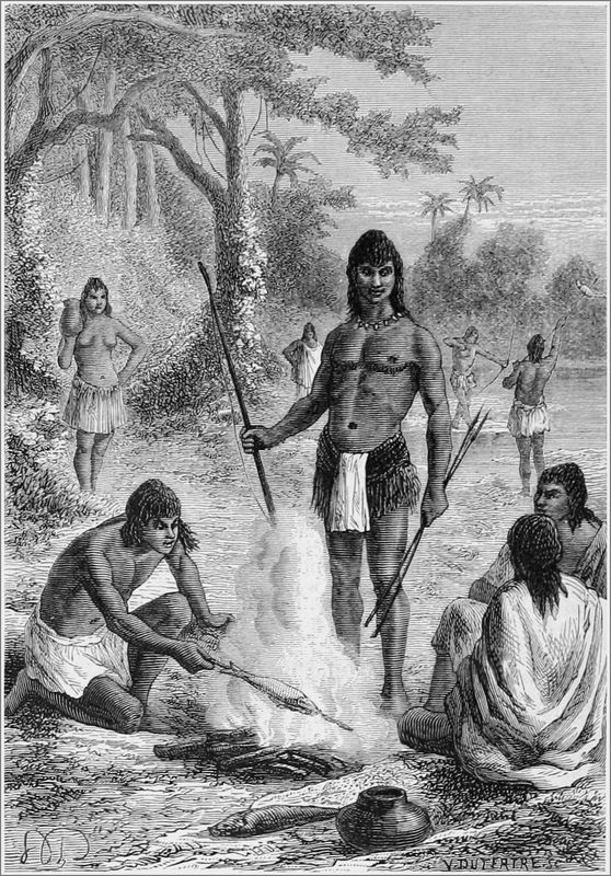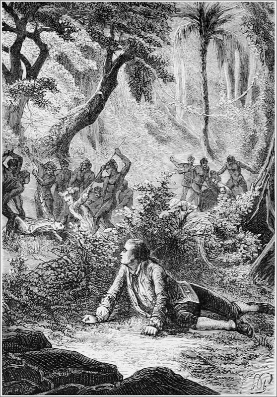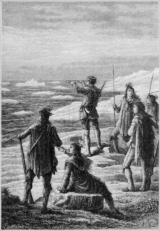 Le 1er février, il mit en mer une embarcation pour aller à la découverte d’un mouillage. Tandis qu’on attendait son retour, on aperçut un grand feu sur le rivage. Quelques vaisseaux espagnols ou français avaient-ils atterri en cet endroit? Faudrait-il livrer combat, pour se procurer l’eau et les vivres dont on avait besoin? Toutes les dispositions furent prises pendant la nuit; mais, au matin, aucun bâtiment n’était en vue. Déjà l’on se demandait si l’ennemi s’était retiré, lorsque l’arrivée de la chaloupe vint fixer toutes les incertitudes, en ramenant un homme vêtu de peaux de chèvres, à la figure encore plus sauvage que ses vêtements.