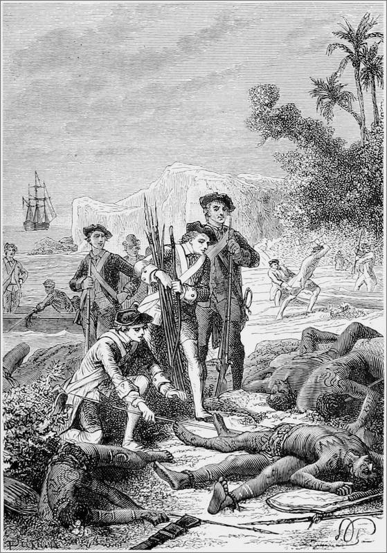 Pendant son séjour à Juan-Fernandez, Selkirk avait vu passer beaucoup de vaisseaux; deux seulement, qui étaient espagnols, y avaient mouillé. Découvert par les matelots, Selkirk, après avoir essuyé leur feu, n’avait échappé à la mort que grâce à son agilité, qui lui avait permis de grimper sur un arbre sans être aperçu.