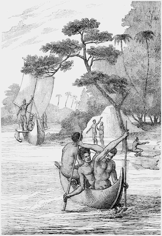 Des navets semés par l’équipage de quelque vaisseau, des choux palmistes, du piment et du poivre de la Jamaïque servaient à cet abandonné pour assaisonner ses aliments. Quand ses souliers et ses habits furent en pièces, ce qui ne tarda guère, il s’en fit en peau de chèvres, avec un clou qu’il employait comme aiguille. Lorsque son couteau fut usé jusqu’au dos, il s’en fabriqua avec des cercles de barrique qu’il avait trouvés sur le rivage. Il avait si bien perdu l’habitude de parler, qu’il avait de la peine à se faire comprendre. Rodgers l’embarqua et lui donna sur son vaisseau l’office de contre-maître.
