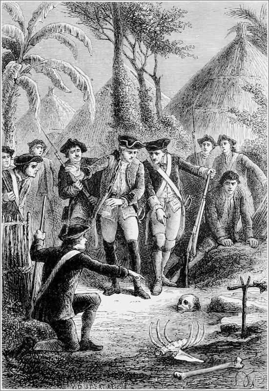 «Il avait été mis à terre, dit la relation, avec ses habits, son lit, un fusil, une livre de poudre, des balles, du tabac, une hache, un couteau, un chaudron, une Bible et quelques autres livres de piété, ses instruments et ses livres de marine. 13 Le pauvre Selkirk pourvut à ses besoins du mieux qu’il lui fut possible; mais, durant les premiers mois, il eut beaucoup de peine à vaincre la tristesse et à surmonter l’horreur que lui causait une si affreuse solitude. Il construisit deux cabanes, à quelque distance l’une de l’autre, avec du bois de myrte-piment. Il les couvrit d’une espèce de jonc et les doubla de peaux de chèvres, qu’il tuait à mesure qu’il en avait besoin, tant que sa poudre dura. Lorsqu’elle approcha de sa fin, il trouva le moyen de faire du feu avec deux morceaux de bois de piment, qu’il frottait l’un contre l’autre.... Quand sa poudre fut finie, il prenait les chèvres à la course, et il s’était rendu si agile par un exercice continuel, qu’il courait à travers les bois, sur les rochers et les collines, avec une vitesse incroyable. Nous en eûmes la preuve lorsqu’il vint à la chasse avec nous; il devançait et mettait sur les dents nos meilleurs coureurs et un chien excellent que nous avions à bord; il atteignait bientôt les chèvres, et nous les apportait sur son dos. Il nous dit qu’un jour il poursuivait un de ces animaux avec tant d’ardeur, qu’il le saisit sur le bord d’un précipice caché par des buissons, et roula du haut en bas avec sa proie. Il fut si étourdi de sa chute, qu’il en perdit connaissance; quand il reprit ses sens, il trouva sa chèvre morte sous lui. Il resta près de vingt-quatre heures sur la place, et il eut assez de peine à se traîner à sa cabane, qui en était distante d’un mille, et dont il ne put sortir qu’au bout de dix jours.»