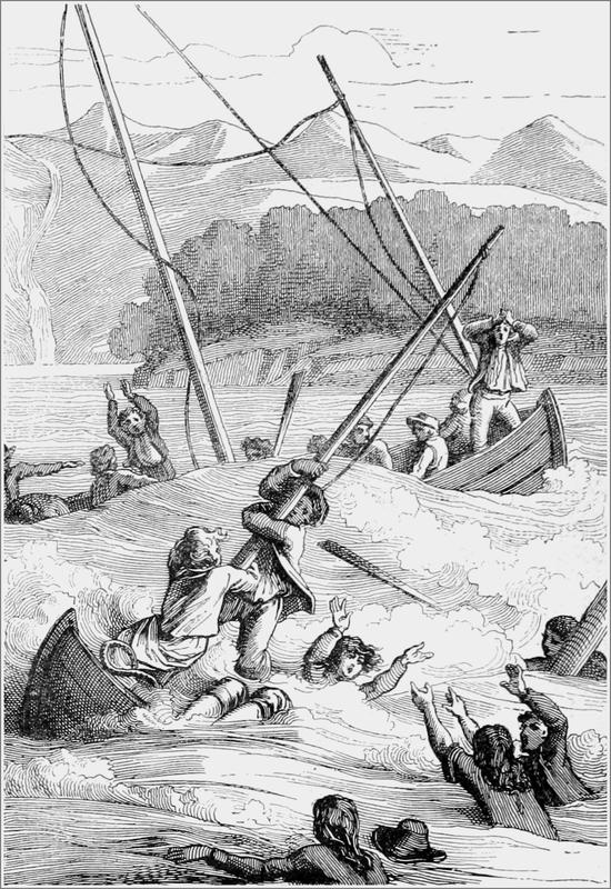 Ce fut le 2 août 1708, que le Duc et la Duchesse quittèrent la rade royale de Bristol. Remarque intéressante à faire d’abord: pendant toute la durée du voyage, un registre, sur lequel devaient être consignés tous les événements de la campagne, fut tenu à la disposition de l’équipage, afin que les moindres erreurs et les plus petits oublis fussent réparés, avant que le souvenir des faits eût pu s’altérer.