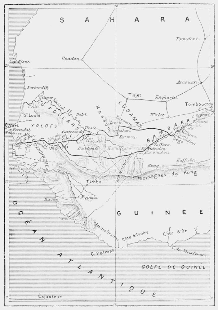 Notre œuvre suivra, à vingt-cinq années de distance, un ouvrage inspiré par la même pensée: les Voyageurs anciens et modernes, de M. Édouard Charton. Cet utile et excellent ouvrage d’un des hommes qui ont le plus contribué à faire naître en France le goût des études géographiques, se compose surtout de choix et d’extraits empruntés aux relations des principaux voyageurs. On voit en quoi le nôtre en diffère.