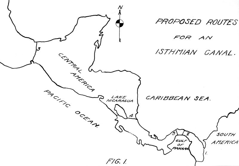 There are at least five routes which at one time or another have been chosen and seriously considered as possible locations for the Isthmian Canal. They are: the Atrato-Napipi, the San Blas, the Tehuantepec, the Nicaragua, and the Panama routes.