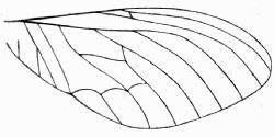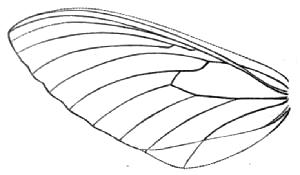 | “ | 7. | Mylothrites Pluto. Neuration of the wings; after a drawing obtained through Mr. Brunner de Wattenwyl (1/1). The second superior subcostal nervule on the left wing should join the nervure midway between the bases of the first and third nervules.[98] |