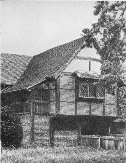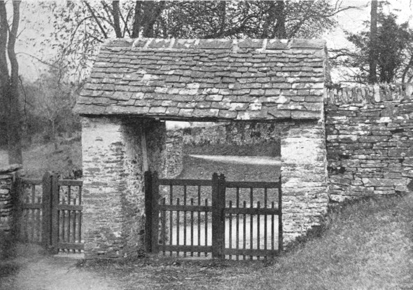 At Ashwell, Hertfordshire, the timber lychgate, which forms the south-west entrance to the churchyard, probably dates from the fifteenth century. The three standards carrying the horizontal lintel are so much more massive at the top than at the bottom that they must certainly have been cut from tree trunks inverted, like the angle spurs used in the construction of ancient timber-framed houses. The windbrace in the roof, and the engrailed vergeboard under the end gable should be noticed.