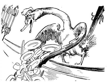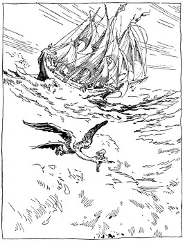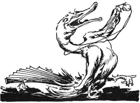 "Anchors and animal crackers! What was that?" Stretching up his neck, Roger took another look, then, flinging the Book of Barons high into the air, he spread his wings and started out to sea.