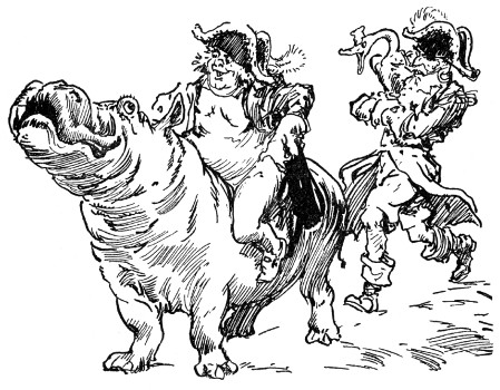 "I'd tie it to the mast and carry it back to Oz," explained Samuel, staring gloomily after the disappearing prize. "Why, it would be the most rare and amazing specimen ever brought back from anywhere, and now—now—I've lost it—" Samuel's arms dropped heavily to his sides and turning away from the cliff, he began walking slowly back toward Nikobo, who had at last ventured to lift her head from the sand. Surprised enough was the hippopotamus to learn that she had been given her power of speech by the ugly little magician on the umbrellaphant, and frightened lest she forget Tandy's language, she began talking rapidly to herself.