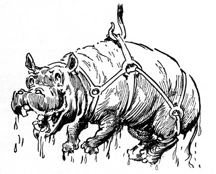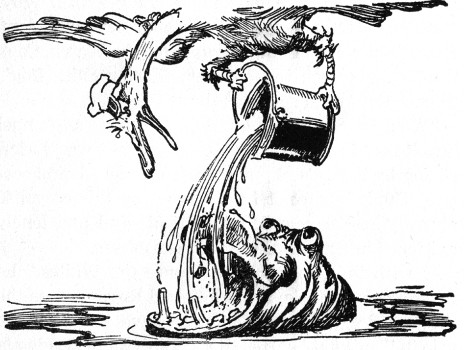 The guard left in charge of the ship thankfully turned the vessel over to its rightful owners and, shaking Tandy feelingly by the hand, climbed down the ladder and dropped nervously on the back of the hippopotamus, who was to carry him to shore.