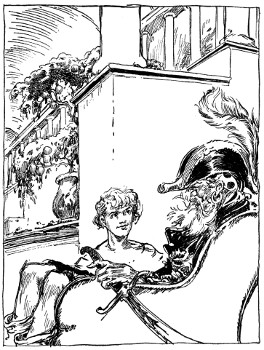 "None other!" puffed Ato, seizing both of the former pirate's hands. "But what have you done to yourself, Sam-u-el? Where's your sash and scimiter? And what's that on your head, may I ask? You don't look natural or seaman-like at all."