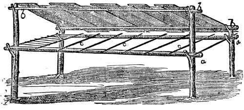 “Before using Peruvian guano, it should be sifted; all the stones and lumps remaining should be broken up, and again sifted, so that nothing may be lost. After this, three or four times its weight of dry sandy soil should be thoroughly mixed with it, and it should remain thus 6–8 days before being used. This preparation should be made under cover, to avoid the possibility of rain falling on the mixture, and the heap should be covered with the empty guano bags, or anything else, to prevent the evaporation of the volatile alkali which it contains.